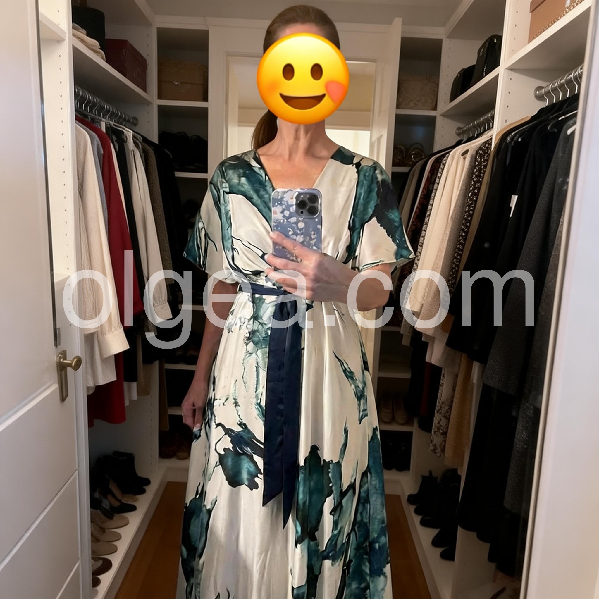 Absolutely stunning print. The teal and white watercolor design looks even better in person. It feels like a high-end designer piece but at a fraction of the cost. Perfect for a summer wedding guest outfit.