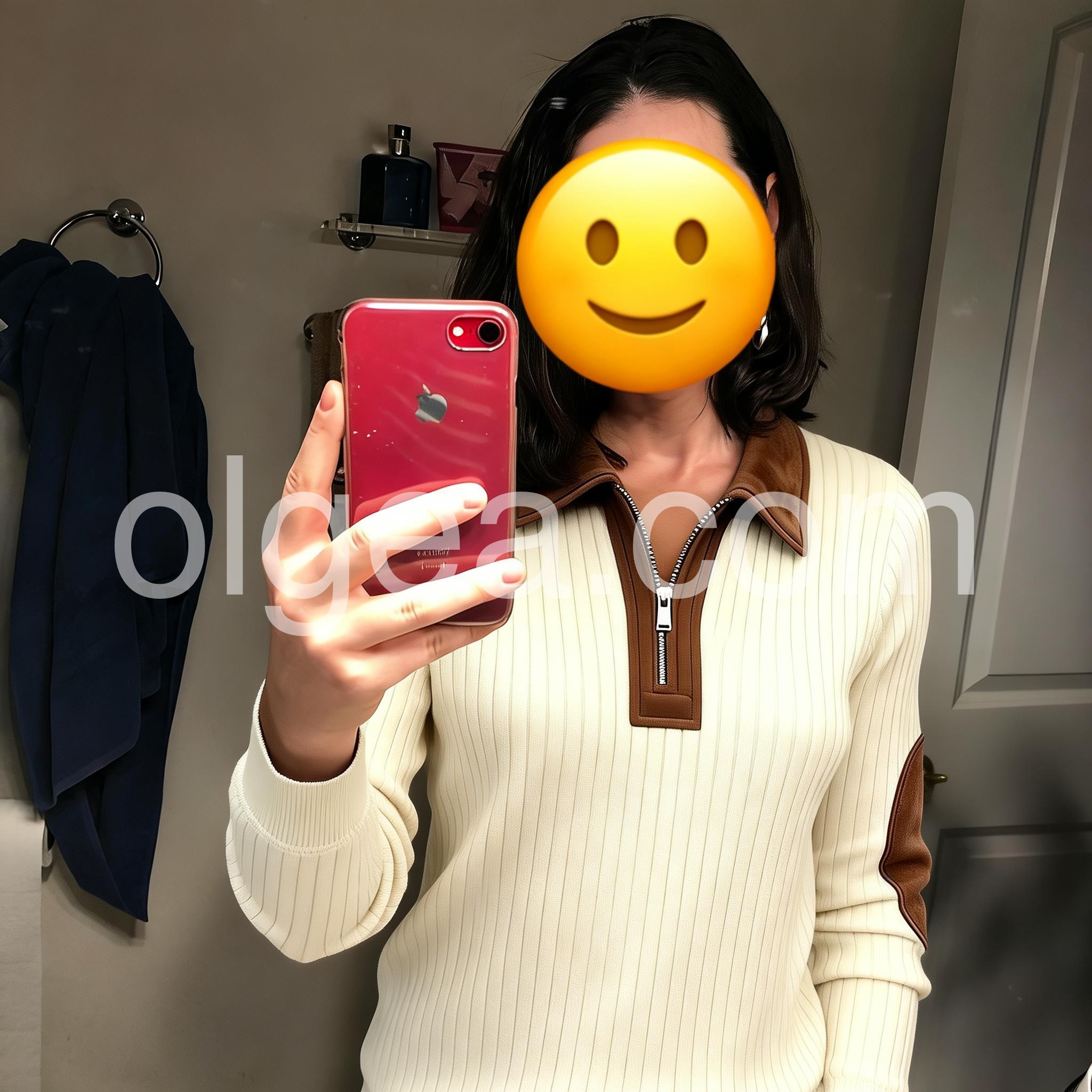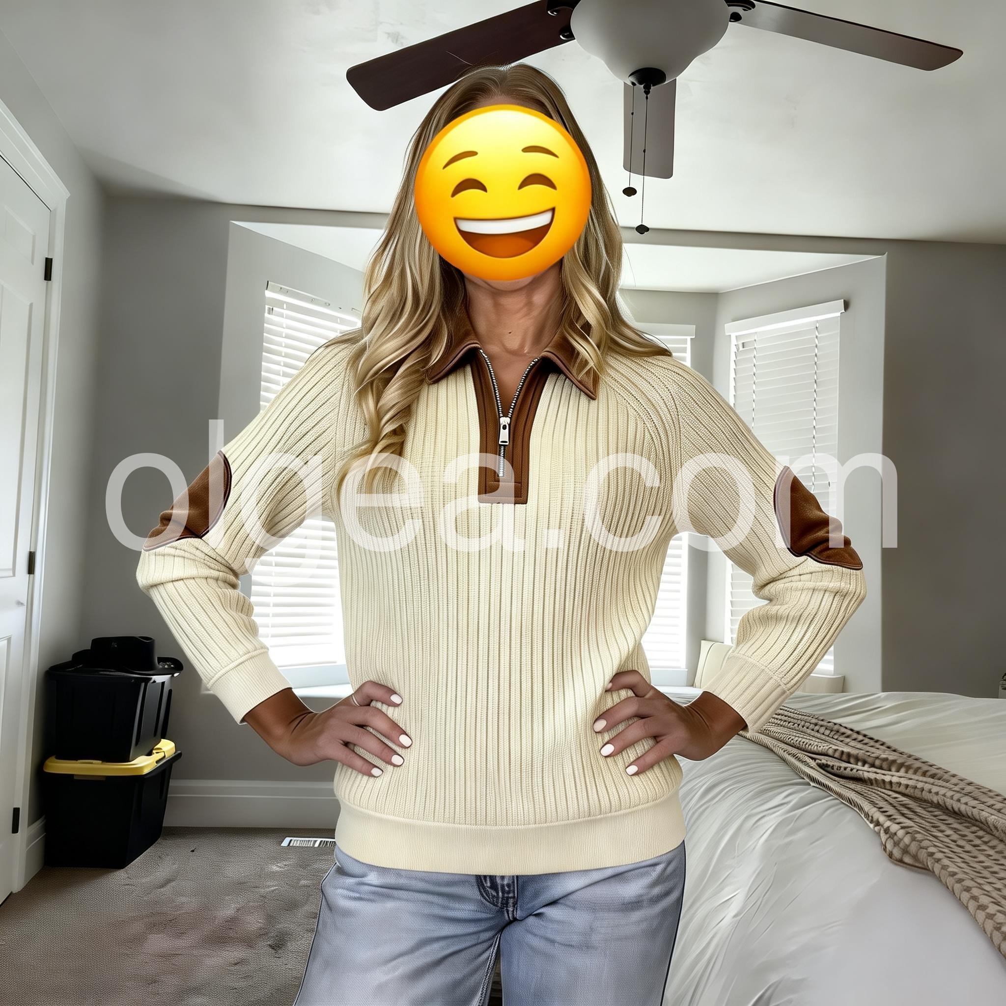Absolutely love this pullover. The contrast between the ribbed white knit and the brown accents is exactly as pictured. Fast shipping too!