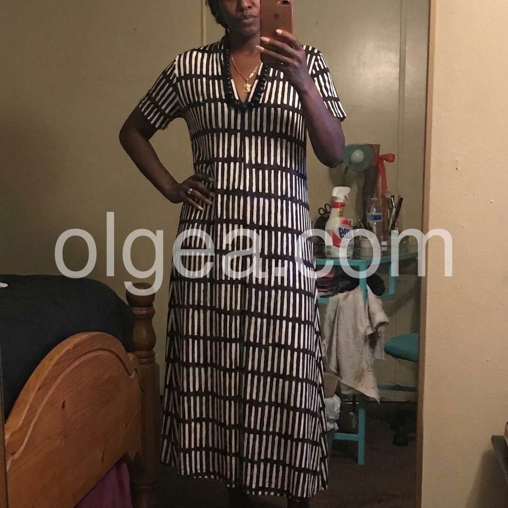 I’m absolutely in love with this dress! The black and white pattern is so stylish and flattering, and the fit feels comfortable and easy to move in. I wore it to a casual get-together and received so many compliments. The length is perfect elegant without being too formal.